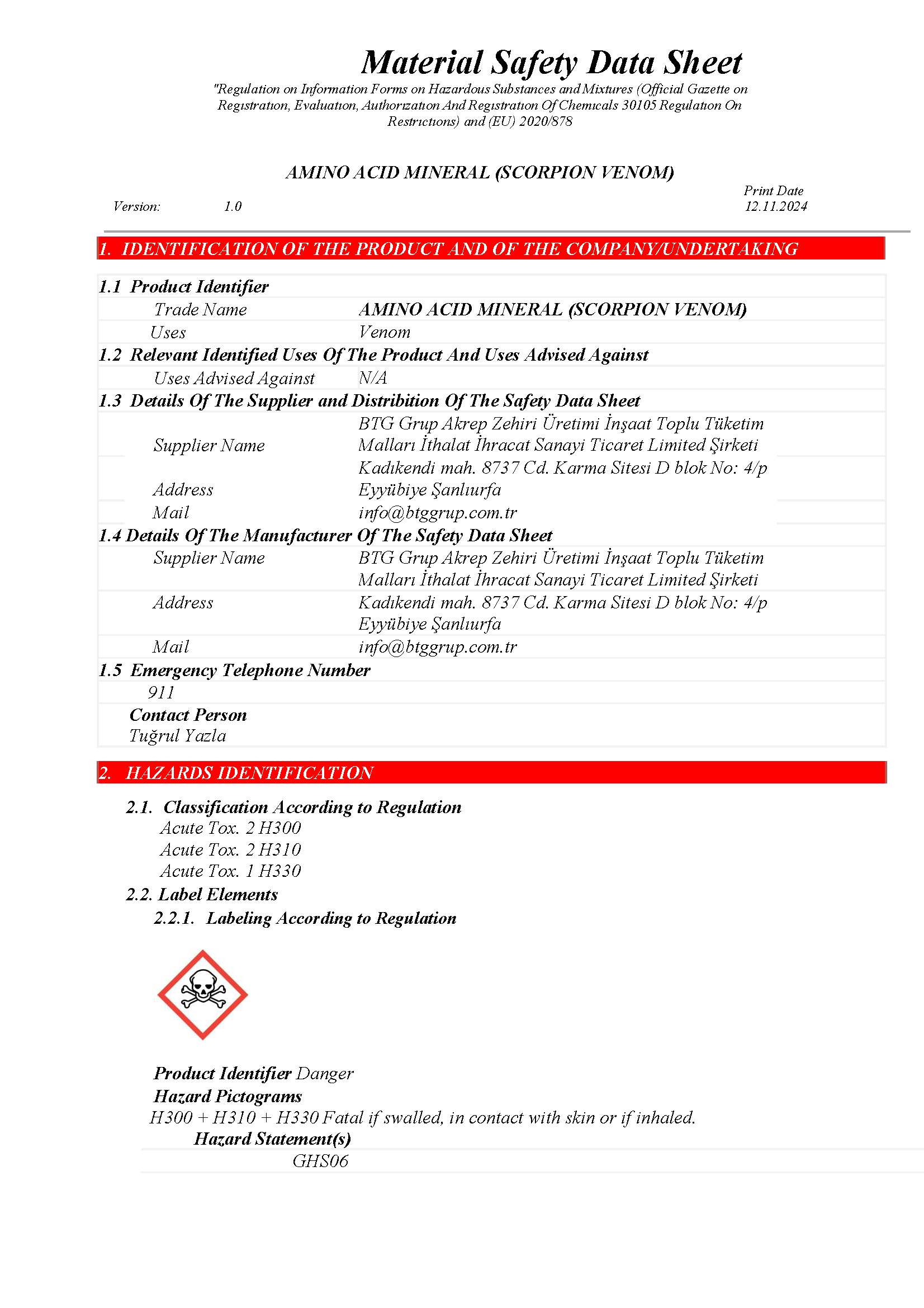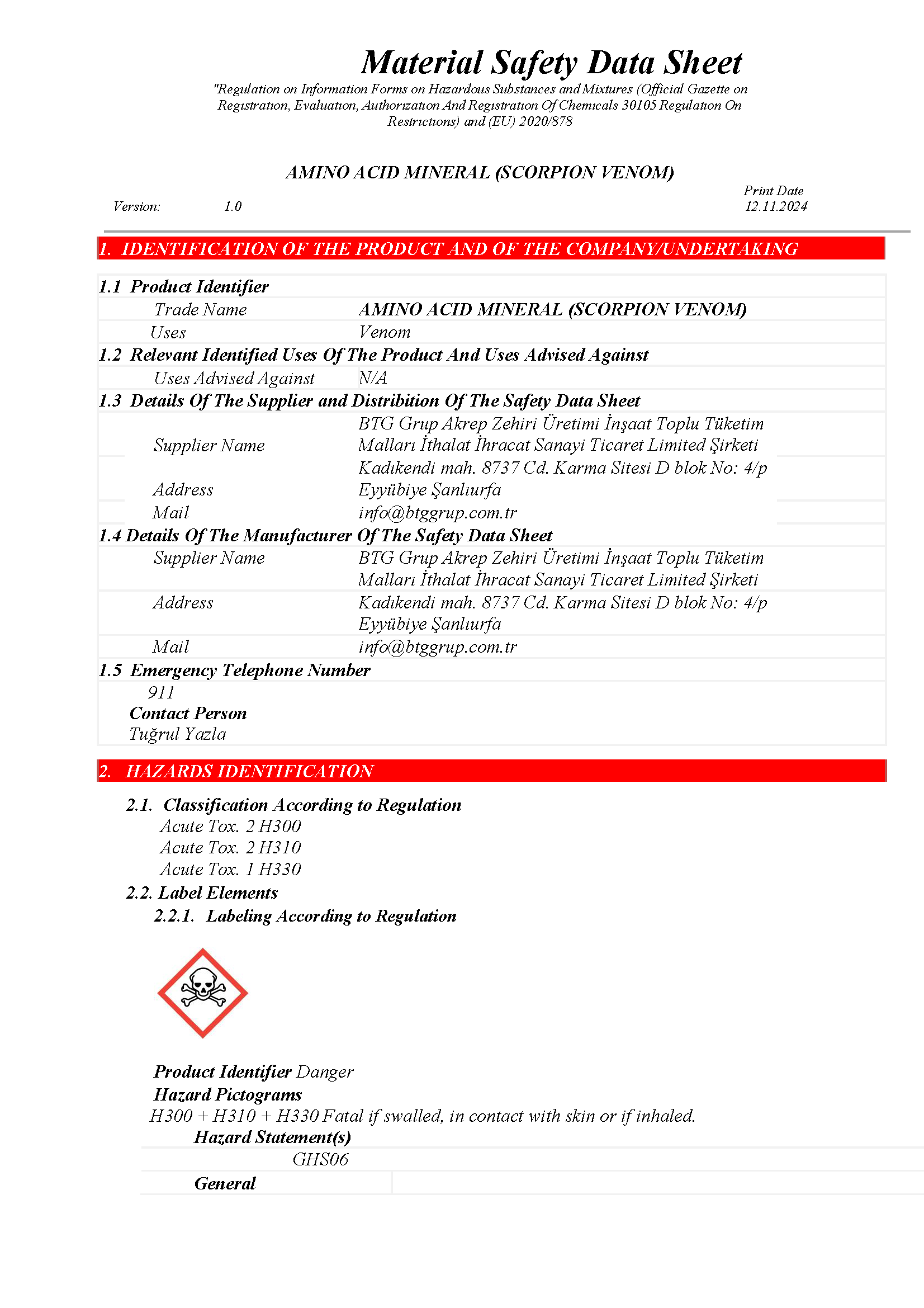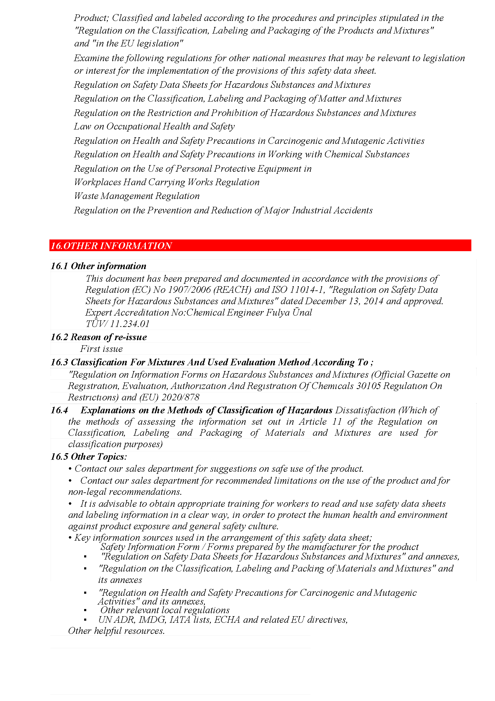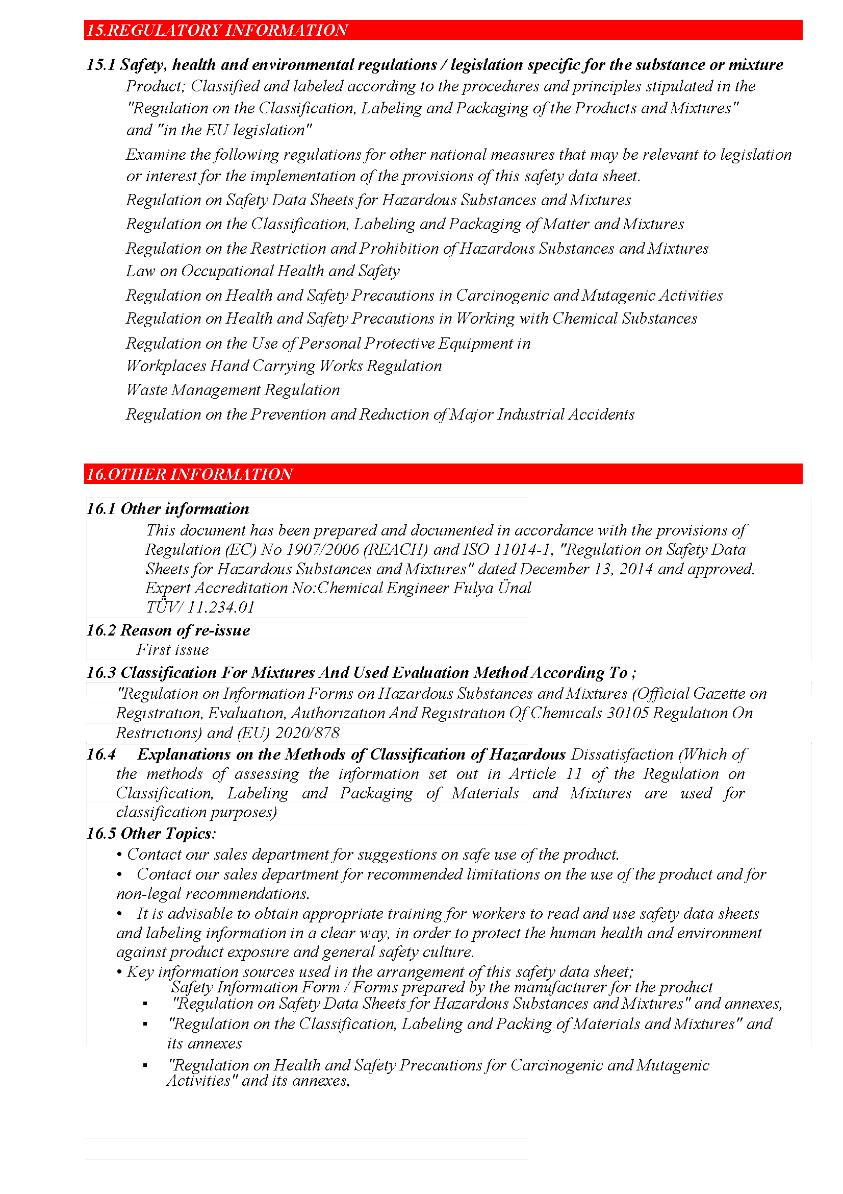 Malzeme Güvenlik Bilgi Formu - Sıvı